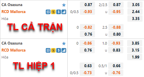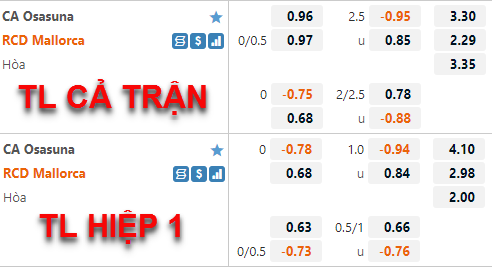 AEGoal chốt kèo bóng đá trực tiếp trận Osasuna vs Mallorca diễn ra lúc 01h00 ngày 23/05 trong khuôn khổ giải VĐQG Tây Ban Nha sau khi dựa trên tính toán, chuyển động về kèo châu Á và đội hình ra sân của 2 đội.