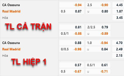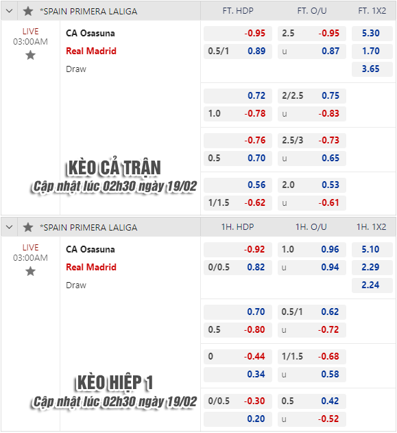 * Chốt kèo trận Osasuna vs Real Madrid (03h00 ngày 19/2)