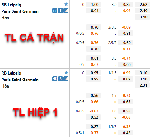 AEGoal chốt kèo bóng đá trực tiếp trận RB Leipzig vs PSG diễn ra lúc 03h00 ngày 04/11 trong khuôn khổ Cúp C1 châu Âu sau khi dựa trên tính toán, chuyển động về kèo châu Á và đội hình ra sân của 2 đội.