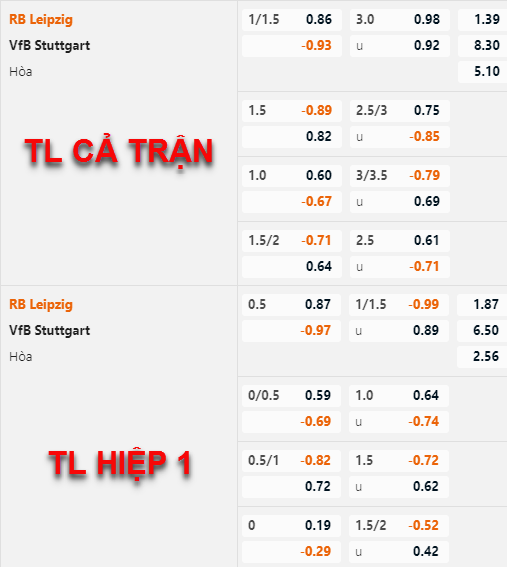 CHỐT KÈO: RB Leipzig -1 1/2 cả trận
