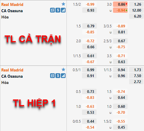 Tỷ lệ của Real Madrid có xu hướng tăng điểm thời gian vừa qua, mốc chính 1 1/2 ở lần chúng tôi cập nhật trước đây đã được nhà cái thay thể bằng mức 1 3/4 ở thời điểm hiện tại. Trong khi đó tỷ lệ tài xỉu của trận đấu lại có diễn biến trái chiều khi mốc 3 vẫn được duy trì là mốc chính nhưng điểm ăn cửa tài đã được điều chỉnh tăng.