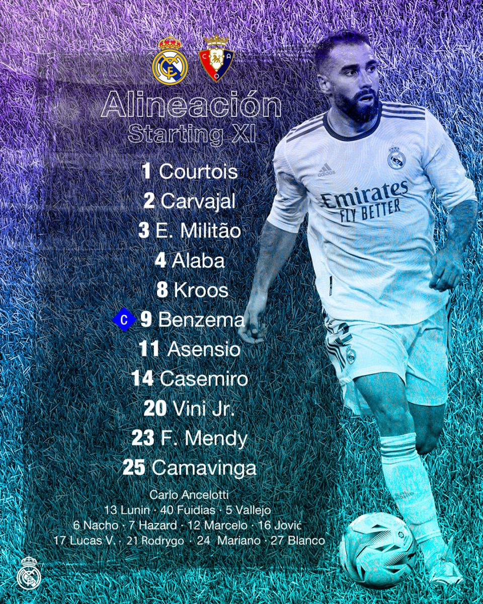 - Osasuna: Aridane Hernández, Ramalho, Budimir chấn thương; Cote bị treo giò.