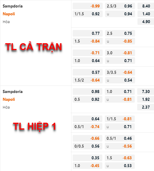 Những diễn biến trên sàn châu Á thời gian vừa qua cho thấy giới đầu tư trên thị trường đang nghi ngời khả năng thắng kèo của Napoli trận này, điều này hoàn toàn dễ hiểu khi Napoli đã thua kèo 3 trận liên tiếp trong khi Sampdoria trái ngược với 3 trận thắng gần nhất. Nhưng theo quan điểm của người viết Napoli vẫn có nhiều cơ hội khi sở hữu lực lượng vượt trội so với đối thủ, việc Napoli thắng tới 7 cuộc đối đầu gần nhất cũng có thể coi là điểm cộng của cửa trên trận này