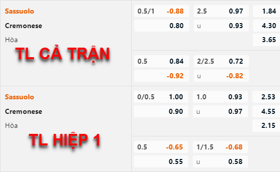 Cremonese +1/2 cả trận