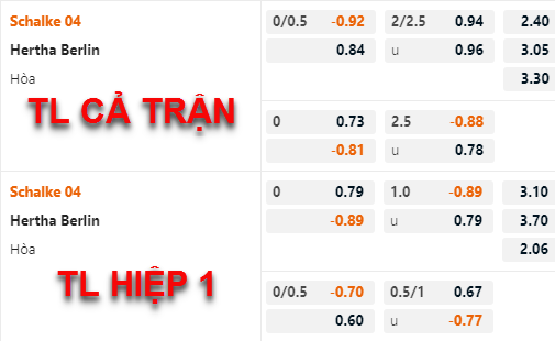 Không có nhiều biến động về tỷ lệ trên sàn giao dịch châu Á ở trận đấu này. Theo đó, Schalke vẫn có tỷ lệ chấp 1/4 cùng lợi điểm bỏ rất sâu so với đại diện thủ đô. Đáng nói, kèo bàn thắng vẫn duy trì ổn định với kèo chính 2 1/4 suốt từ đầu phiên đến sát giờ trận đấu diễn ra. Điều này cho thấy nhà cái đánh giá thấp cho khả năng 2 đội bét bảng tạo ra kịch bản tưng bừng bàn thắng.