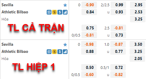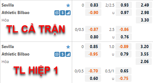 AEGoal chốt kèo bóng đá trực tiếp trận Sevilla vs Bilbao diễn ra lúc 03h00 ngày 23/05 trong khuôn khổ giải VĐQG Tây Ban Nha sau khi dựa trên tính toán, chuyển động về kèo châu Á và đội hình ra sân của 2 đội.