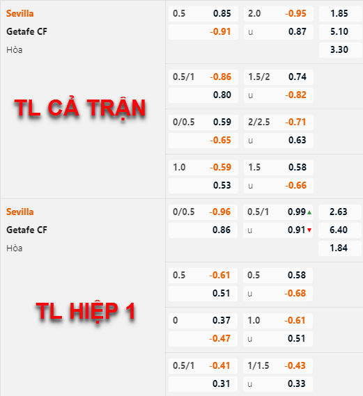 Tỷ lệ chấp của Sevilla không có nhiều thay đổi thời gian vừa qua, hiện tại đội chủ nhà vẫn duy trì mức chấp 1/2 và điểm ăn của hai cửa không có biến động nào đáng kể. Trong khi đó bên phía tỷ lệ tài xỉu mốc 2 hoà vẫn là mốc chính của trận đấu, điểm ăn của cửa tài đã được điều chỉnh tăng nhưng không nhiều.