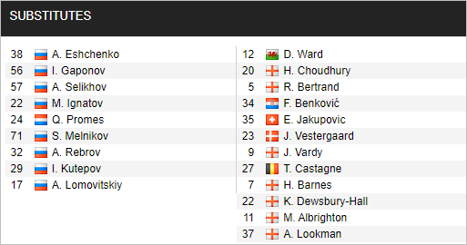 * Danh sách dự bị trận Spartak Moscow vs Leicester City, 21h30 ngày 20/10: Europa League