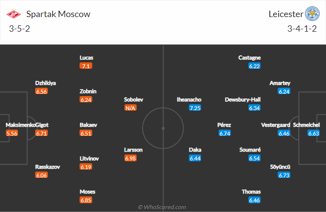 AEGoal chốt kèo bóng đá trực tiếp trận Spartak Moscow vs Leicester City diễn ra lúc 21h30 ngày 20/10 trong khuôn khổ vòng bảng Europa League sau khi dựa trên tính toán, chuyển động về kèo châu Á và đội hình ra sân của 2 đội.