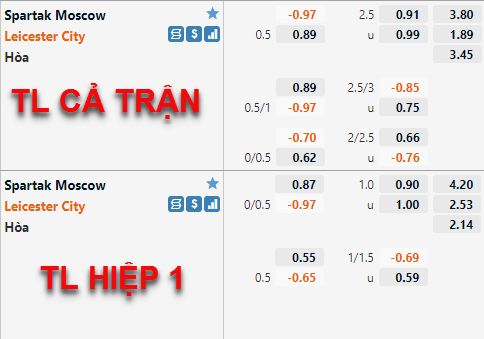 * Chốt kèo trận Spartak Moscow vs Leicester City (21h30 ngày 20/10)