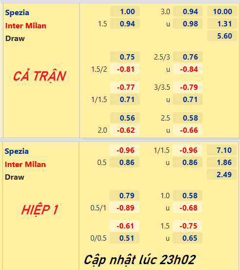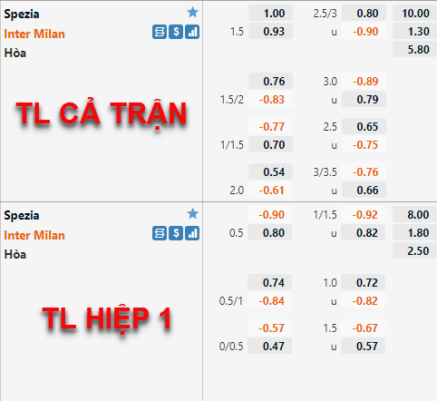 AEGoal chốt kèo bóng đá trực tiếp trận Spezia vs Inter Milan diễn ra lúc 00h00 ngày 16/4 trong khuôn khổ giải VĐQG Italia sau khi dựa trên tính toán, chuyển động về kèo châu Á và đội hình ra sân của 2 đội.