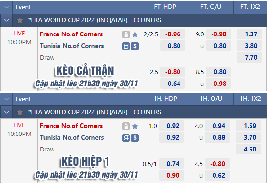 CHỐT KÈO trực tiếp trận Tunisia vs Pháp, 22h00 ngày 30/11: Hiệp 2