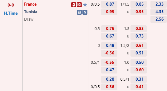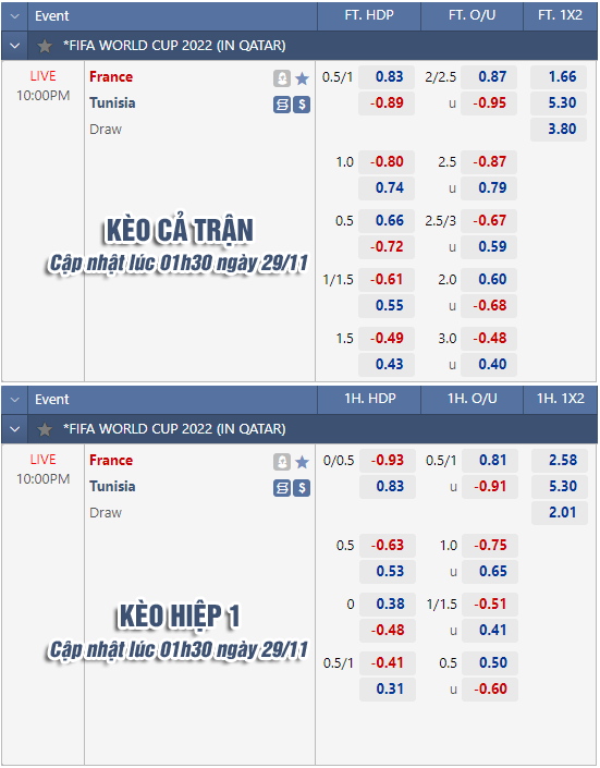 * CHỐT KÈO trận Tunisia vs Pháp (22h00 ngày 30/11)