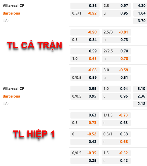 Barcelona -3/4 cả trận