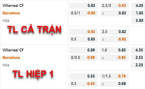 Tỷ lệ chấp của Barcelona không có nhiều biến động so với trước đây, đội khách vẫn có mức chấp chính 3/4, điểm ăn của 2 cửa không có thay đổi đáng kể so với trước đây. Trong khi đó bên phía tỷ lệ tài xỉu của trận đấu lại có những thay đổi rõ rệt, mốc chính 2 3/4 trước đây đã được nhà cái thay thế bằng mốc 2 1/2 ở thời điểm hiện tại.