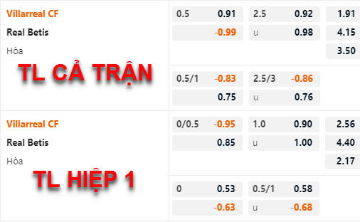 Diễn biến trên sàn giao dịch châu Á đang đem lại rất nhiều thuận lợi cho lựa chọn cửa trên và tài trận này. Mặc dù hiện tại phong độ cũng như kết quả của đội chủ nhà không vượt trội so với Betis nhưng kết quả thắng 5/6 lần đón tiếp Betis gần nhất trên sân nhà là điểm tựa tốt cho Villarreal giành chiến thắng trận này