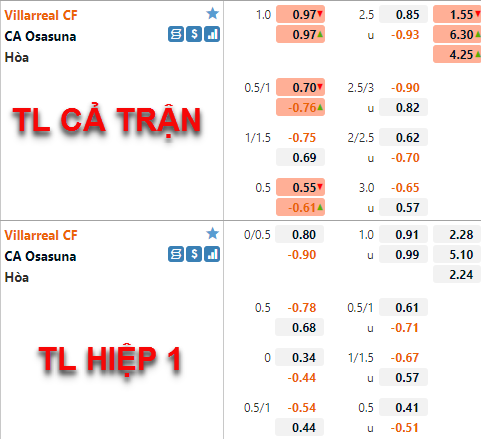 Tỷ lệ chấp của Villarreal có xu hướng tăng điểm thời gian vừa qua. Hiện tại đội chủ nhà đã có tỷ lệ chấp chính là 1 hòa thay cho mức 3/4 ở lần chúng tôi cập nhật sáng nay. Bên phía tỷ lệ tài xỉu, mốc 2 1/2 vẫn được duy trì là mốc chính của trận đấu nhưng điểm ăn của cửa tài đã được điều chỉnh giảm rõ rệt.