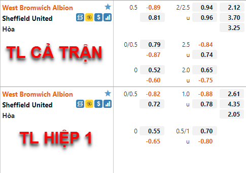 Tỷ lệ chấp của West Brom vẫn được nhà cái châu Á giữ ở mức 1/2 nhưng điểm ăn đang được điều chỉnh theo hướng có lợi cho lựa chọn cửa trên. Tương tự bên phía tỷ lệ tài xỉu của trận đấu không có biến động lớn, mốc 2 1/4 vẫn là mốc chính của trận đấu, điểm ăn cửa tài đã được điều chỉnh tăng so với trước đây.