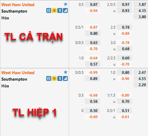AEGoal chốt kèo bóng đá trực tiếp trận West Ham vs Southampton diễn ra lúc 22h00 ngày 26/12 trong khuôn khổ giải Ngoại hạng Anh sau khi dựa trên tính toán, chuyển động về kèo châu Á và đội hình ra sân của 2 đội.