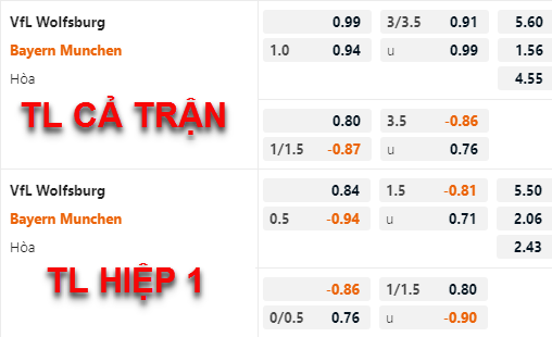 Tỷ lệ chấp của đội khách không có nhiều thay đổi thời gian vừa qua, Bayern Munich tiếp tục duy trì mức chấp 1 hoà. Bên phía tỷ lệ tài xỉu của trận đấu có những biến động rõ ràng hơn, mốc 3 1/4 vẫn được duy trì là mốc chính của trận đấu nhưng điểm ăn của cửa xỉu đã được điều chỉnh giảm so với trước đây.