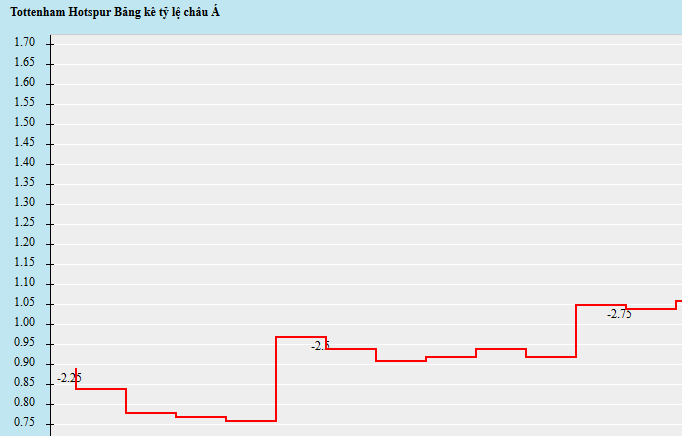 Trên sàn châu Á hôm nay thực sự sôi động với hàng loạt các mã đầu tư đáng chú ý như Juventus, Tottenham, Atletico Madrid hay PSG ở những cấp độ giải đấu khác nhau. Diễn biến cụ thể cho thấy Tottenham là đội tạo ra sức hút lớn nhất với sự bứt phá mạnh mẽ trên thị trường giao dịch. Đội bóng thành London ban đầu được định giá với mức kèo chấp 2 1/4 khi tiếp đón đội hạng dưới Rochdale trong trận đá lại vòng 5 FA Cup.