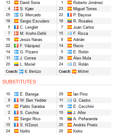So với thời điểm đầu phiên, Sevilla đã mất điểm rất lớn. Đội chủ sân Sanchez Pizjuan bị điều chỉnh xuống tỷ lệ chấp 1 1/4 vào thời điểm hai đội đã công bố đội hình xuất phát, thấp hơn đáng kể với kèo chấp 1 1/2 vào đầu phiên. Nhà đầu tư tháo chạy khỏi đội cửa trên khi họ thiếu hụt lực lượng đáng kể với hàng loạt cái tên sáng giá không ra sân ngay từ đầu châu như Ben Yedder, Banega hay Nolito.