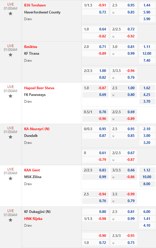 AEGoal chốt kèo bóng đá trực tiếp những trận đấu đáng chú ý trong khuôn khổ Europa Conference League diễn ra lúc 01h00 ngày 28/07/2023 sau khi dựa trên tính toán, chuyển động về kèo châu Á.