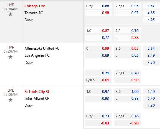 * Minnesota United vs Los Angeles FC: Đội khách nhận được nhiều tín hiệu tích cực khi từ vị thế cửa dưới lên chấp về giá. Nhưng nên nhớ Los Angeles FC có thứ hạng cũng như chất lượng nhân sự được đánh giá cao. Việc sở hữu tỷ lệ như vậy chưa phải là tín hiệu tích cực với Los Angeles FC.