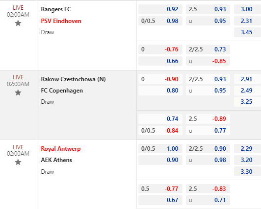 * Royal Antwerp vs AEK Athens: Dù có ưu thế sân bãi nhưng Royal Antwerp thiếu đi sức bật, vẫn chỉ chấp đồng banh với điểm ăn đủ. AEK Athens cho thấy tinh thần chiến đấu đáng khen ngợi và những gì họ trình diễn thời gian qua cũng rất ổn định.