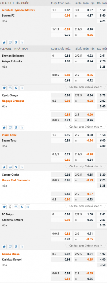 * Jeonbuk Hyundai vs Suwon FC: Chốt Jeonbuk Hyundai -1 1/4 FT