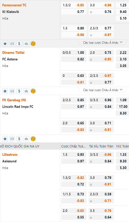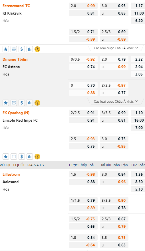Ferencvarosi TC vs KI Klaksvik: KI Klaksvik +1 1/2 cả trận