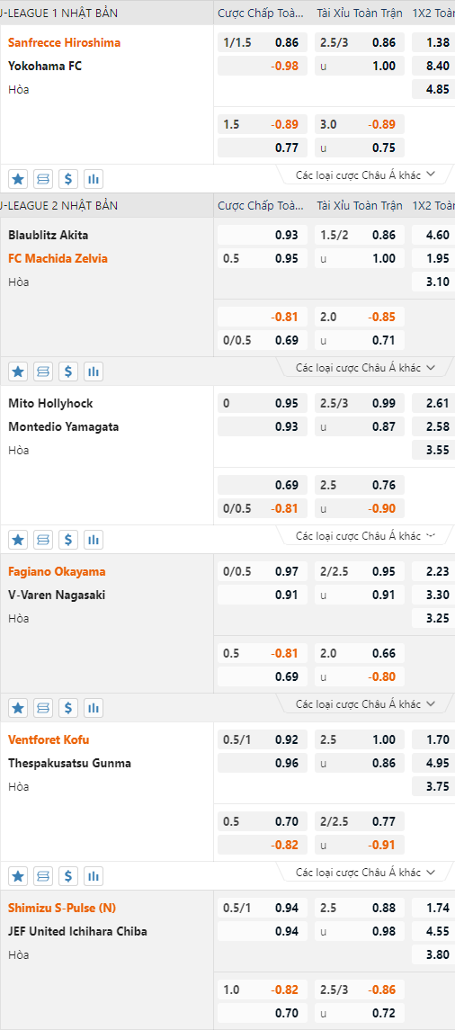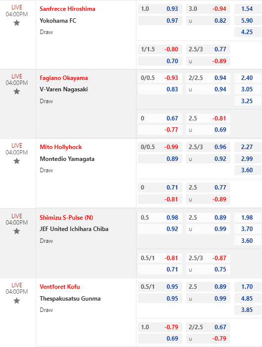 AEGoal chốt kèo bóng đá trực tiếp những trận đấu đáng chú ý tại Nhật Bản diễn ra lúc 16h00 ngày 16/07/2023 sau khi dựa trên tính toán, chuyển động về kèo châu Á và đội hình ra sân.