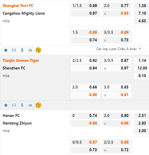 Tỷ lệ chấp của đội chủ nhà có xu hướng giảm, hiện tại mức chấp chính của trận đấu chỉ còn được duy trì ở mức 1 1/4, điều này cho thấy thị trường đang nghi ngờ khả năng thắng kèo của Shanghai Port. Điều này hoàn toàn hợp lý bởi Shanghai Port mặc dù đứng đầu BXH nhưng mới chỉ thắng kèo 1/8 trận sân nhà kể từ đấu mùa.