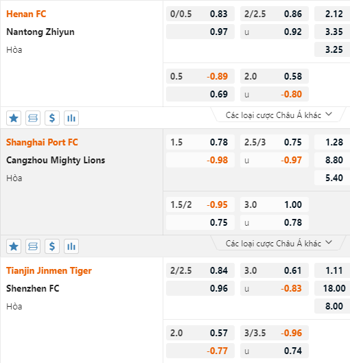 Henan FC vẫn duy trì mức chấp chính 1/4 trên san giao dịch nhưng điểm ăn của cửa trên đã được điều chỉnh tăng so với trước, trong khi tỷ lệ tài xỉu của trận đấu cũng đã được kèo xuống mức 2 hoà thay cho mức 2 1/4 trước đây. Diễn biến trên thị trường cho thấy cửa trên đang bị nghi ngờ.