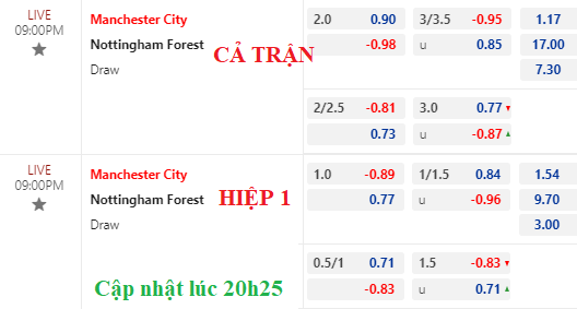 Trên sàn châu Á, Man City vẫn chấp 2 hòa và tài xỉu nhích lên thành 3 1/4. Với đội hình ra sân như vậy, Man xanh vẫn đủ sức thắng đậm Nottingham dù đối phương chủ động chơi thấp.