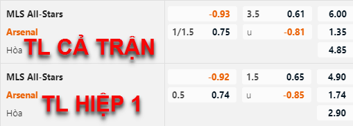 * Chốt kèo trận MLS All-Stars vs Arsenal (07h30 ngày 20/7)