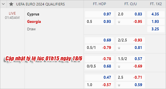Duy trì kèo chấp ổn định ở mốc 2 hòa, niềm tin dành cho Georgia là cũng khá ổn định ở trận này. Ở phương diện tổng bàn thắng, với cách bố trí đội hình khá thấp, sẽ khó trông đợi vào kịch bản bùng nổ, nhất là khi biết rằng trên thị trường, kèo Tài Xỉu cũng đã giảm từ 2 1/4 xuống 2 hòa.