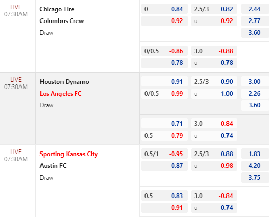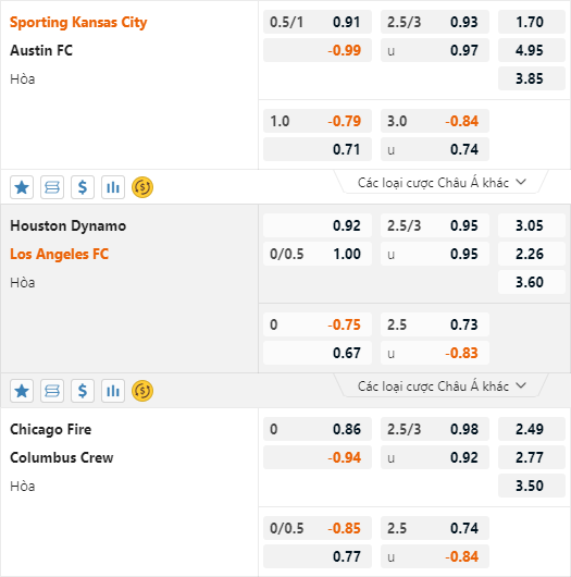 * Sporting Kansas City vs Austin: Phong độ không ổn nhưng Sporting Kansas City vẫn chấp cao, lên tới 3/4 trận này là tín hiệu tích cực dành cho chủ. Nên nhớ lần tiếp Austin gần nhất thì Sporting Kasas City còn bị đặt ở thế cửa dưới.