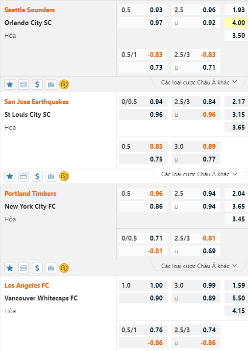 * Seattle Sounders vs Orlando City: Chốt Xỉu 2 1/2 FT