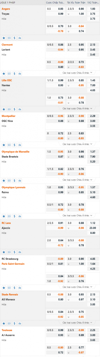 AEGoal chốt kèo bóng đá trực tiếp giải VĐQG Pháp loạt 02h00 ngày 28/5/2023 sau khi dựa trên tính toán, chuyển động về kèo châu Á và đội hình ra sân của các cặp đấu.