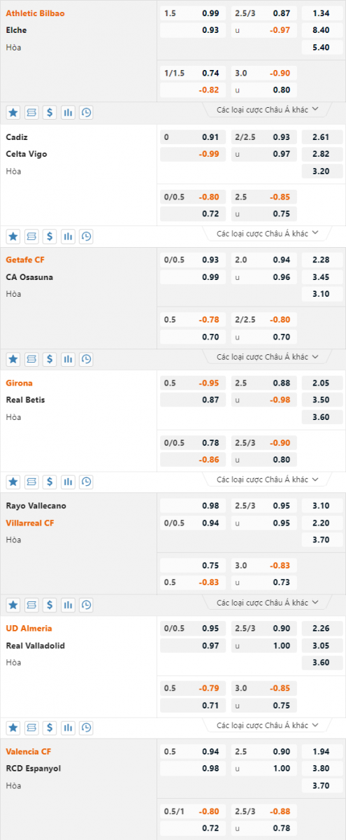 AEGoal chốt kèo bóng đá trực tiếp các trận đấu trong khuôn khổ giải VĐQG Tây Ban Nha diễn ra lúc 00h00 ngày 29/05/2023 sau khi dựa trên tính toán, chuyển động về kèo châu Á và đội hình ra sân của 2 đội.