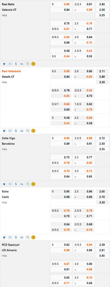 Valladolid vs Getafe: Valladolid sẽ trụ hạng nếu giành 3 điểm trận này trong khi Getafe không được phép. Việc tỷ lệ chấp của đội chủ nhà tăng từ 1/4 lên 1/2 đem lại tín hiệu tốt hơn cho cửa trên. CHỐT: Valladolid -1/2 cả trận
