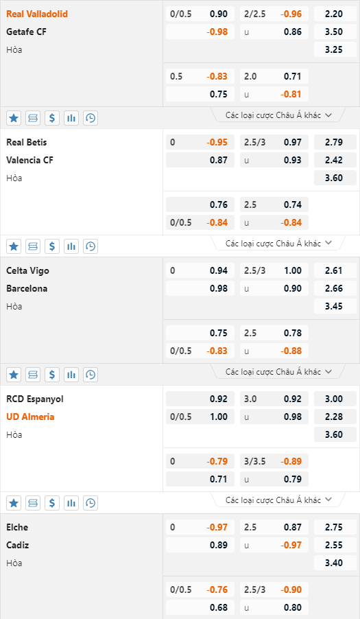 AEGoal chốt kèo bóng đá trực tiếp những trận đấu đáng chú ý trong khuôn khổ giải VĐQG Tây Ban Nha diễn ra lúc 02h00 ngày 05/06/2023 sau khi dựa trên tính toán, chuyển động về kèo châu Á và đội hình ra sân.