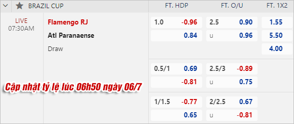 Chốt kèo: Atl Paranaense (+1) FT và Xỉu (2 1/2) FT