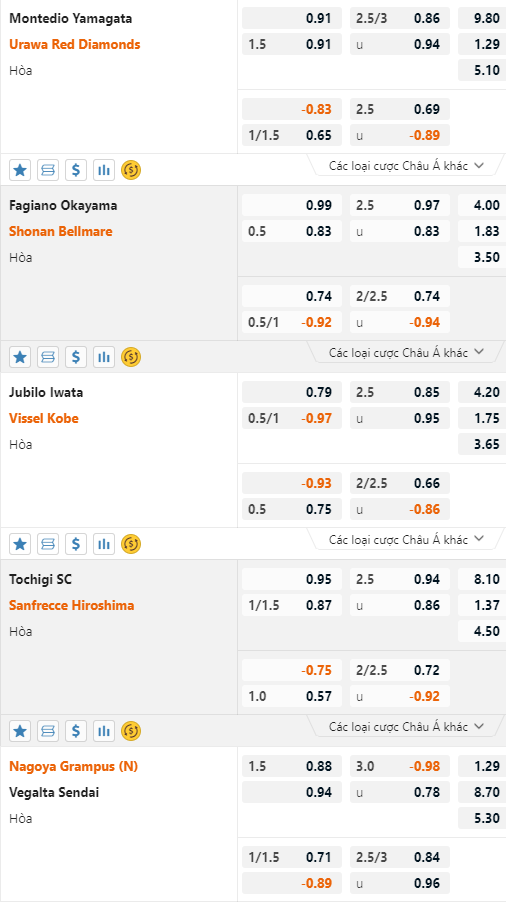 CHỐT: Vegalta Sendai +1 1/2 FT