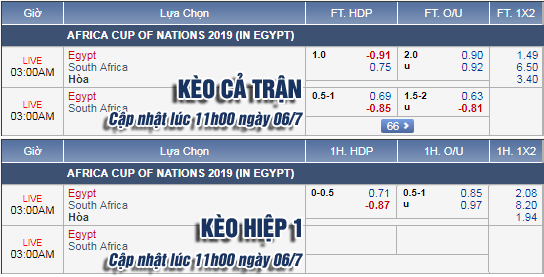 AEGoal.net chốt kèo trực tiếp trận Ai Cập vs Nam Phi diễn ra lúc 02h00 ngày 07/7 sau khi dựa trên tính toán, chuyển động về kèo châu Á và đội hình ra sân của 2 đội.