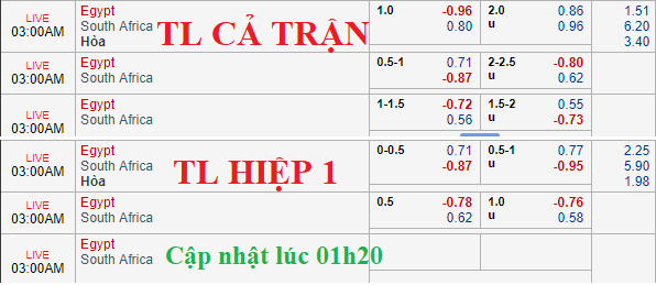 Ai Cập vẫn giữ được kèo chấp 1 hòa nhưng điểm ăn của họ đã "bớt" bỏ sâu hơn so với phiên khớp lệnh lúc trưa ngày 06/07. Xu hướng lựa chọn của phần đông nhà đầu tư cũng dễ hiểu, bởi Ai Cập ngoại trừ yếu tố sân bãi thì còn có nhiều nhân tố nổi bật hơn so với Nam Phi, điển hình là Salah. Ở khía cạnh tổng bàn thắng, mức tài xỉu gần như không có thay đổi đáng kể khi vẫn là 2 hòa với lợi nhuận thấp hơn cho cửa tài.