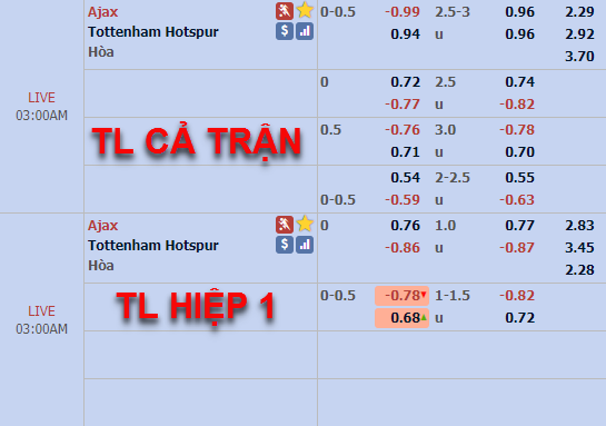 Tỷ lệ của trận đấu vẫn đang được nhà cái châu Á giữ ở mức chấp 1/4 của Ajax Amsterdam nhưng ở thời điểm hiện tại mức điểm ăn của cửa trên đã được điều chỉnh tăng so với thời điểm sáng nay. Ở bên phía tỷ lệ tổng bàn thắng cả trận cũng có diễn biến tương tự, mức tỷ lệ 2 3/4 vẫn là tỷ lệ chính của trận đấu nhưng điểm ăn của cửa tài đã tăng điểm đáng kể.