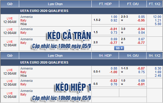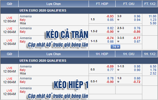 * Chốt kèo trận Armenia vs Italia (23h00)