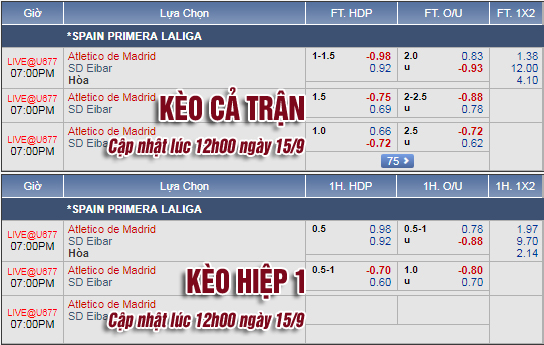 AEGoal.net chốt kèo trực tiếp trận Atletico Madrid vs Eibar sau khi dựa trên tính toán, chuyển động về kèo châu Á và đội hình ra sân của 2 đội.